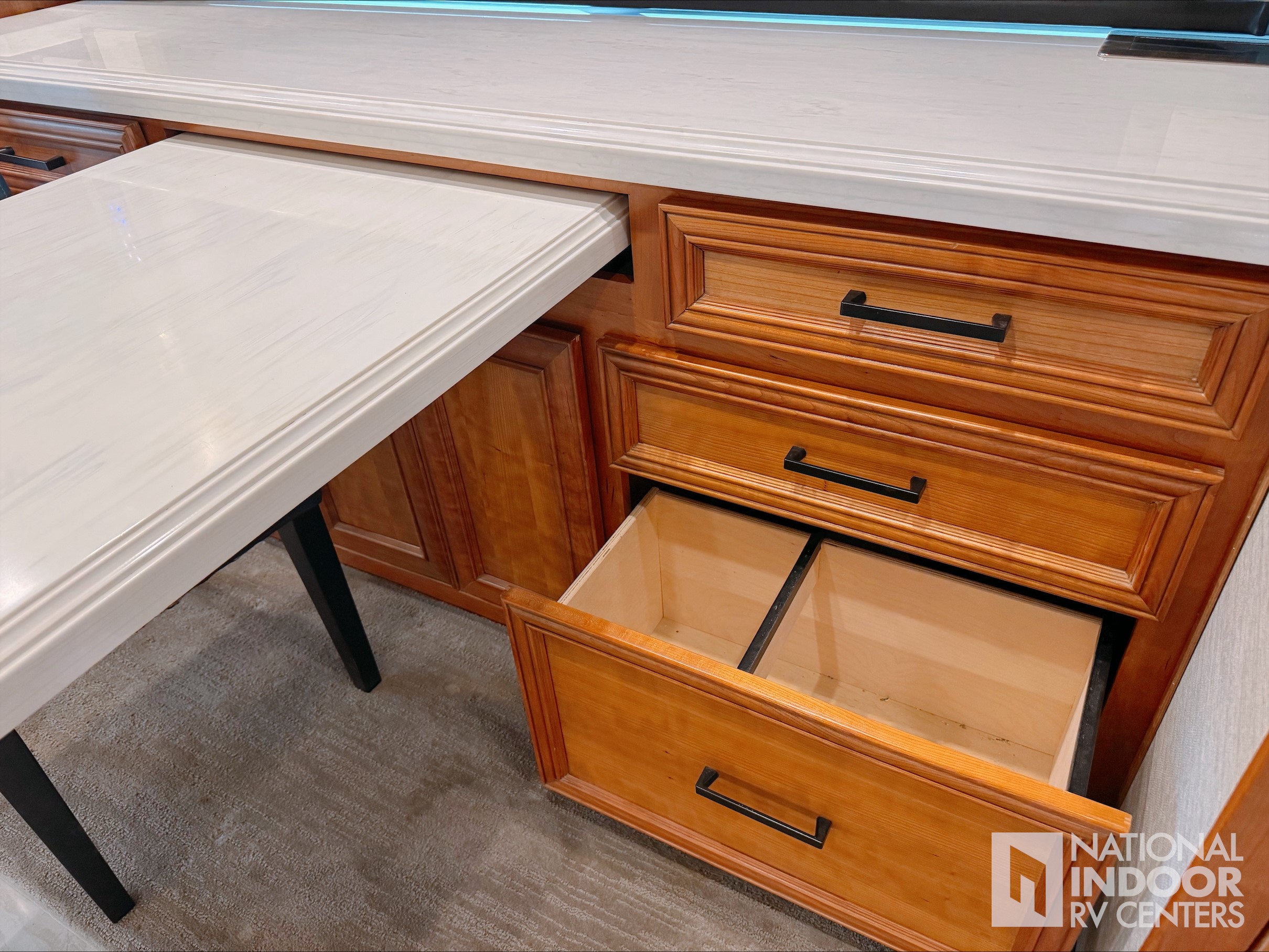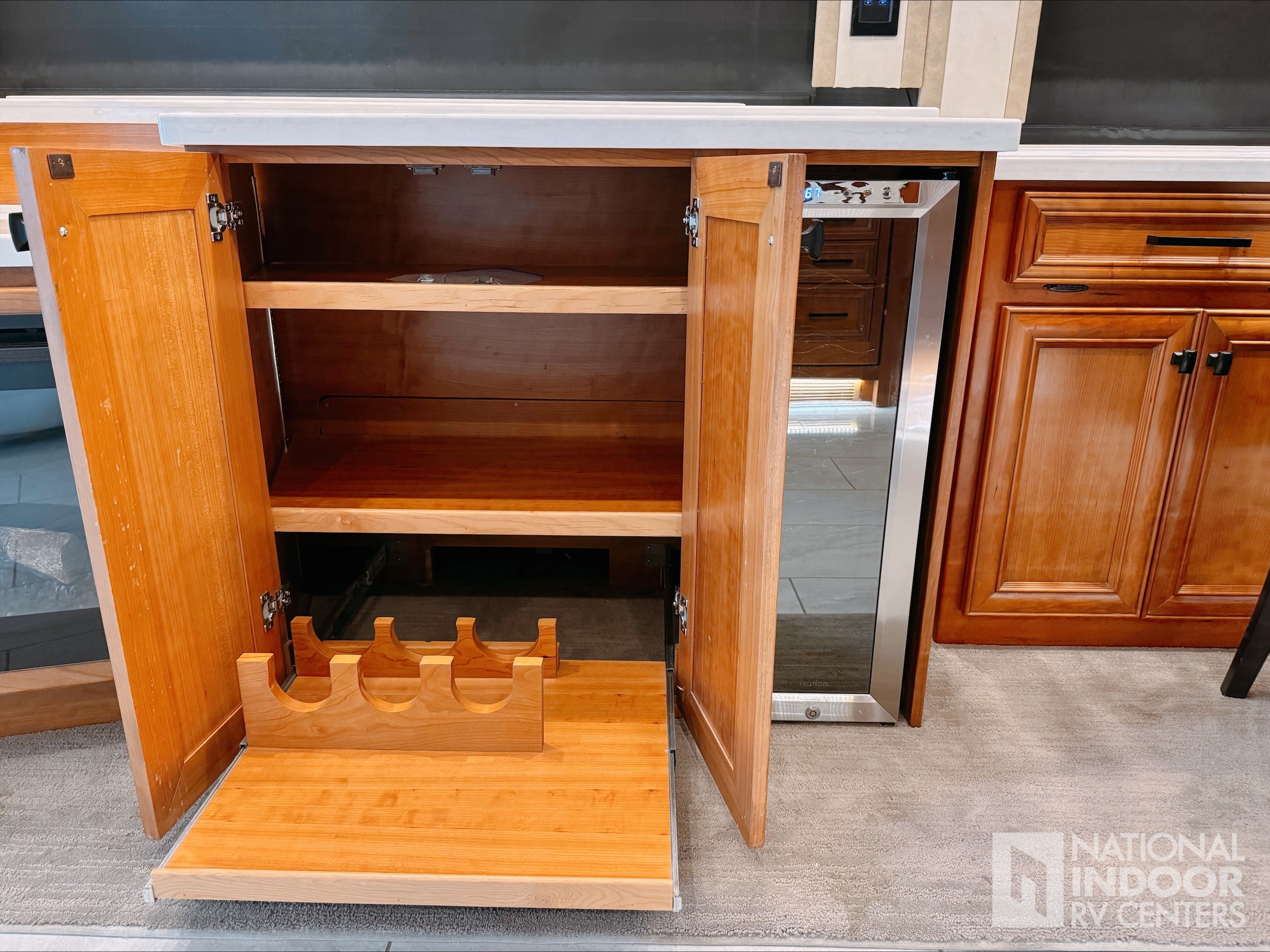 • Wide Slide-Out Storage