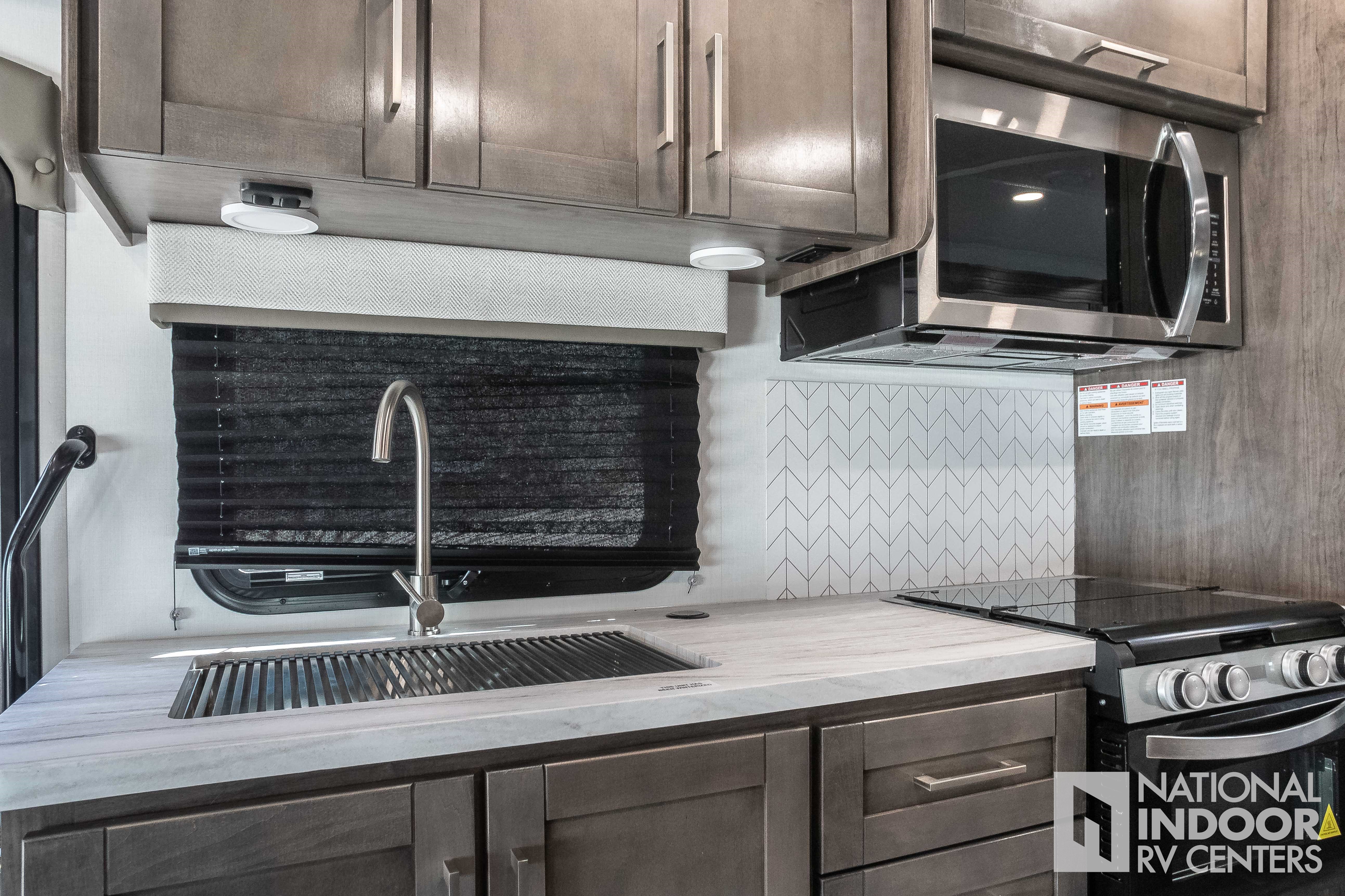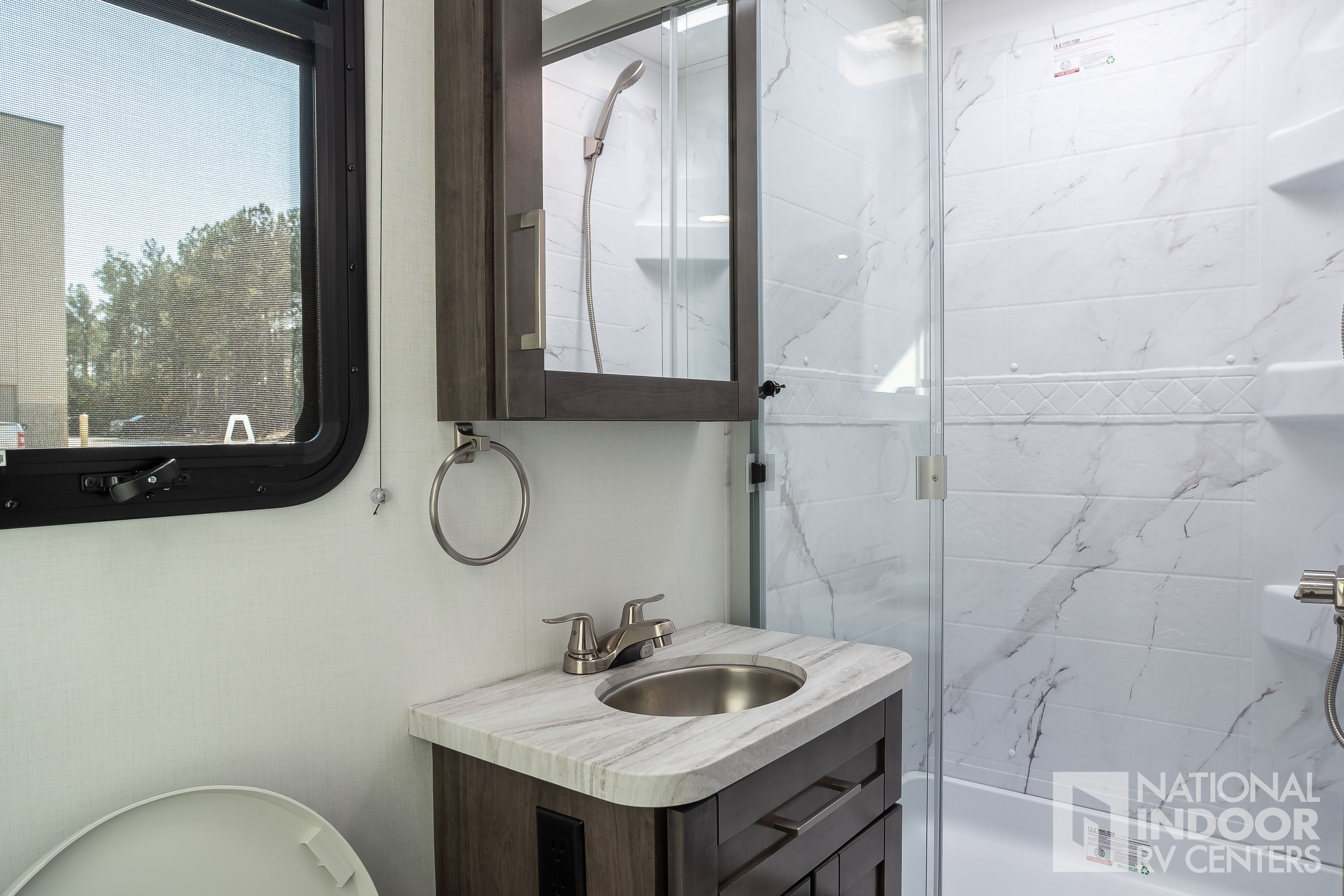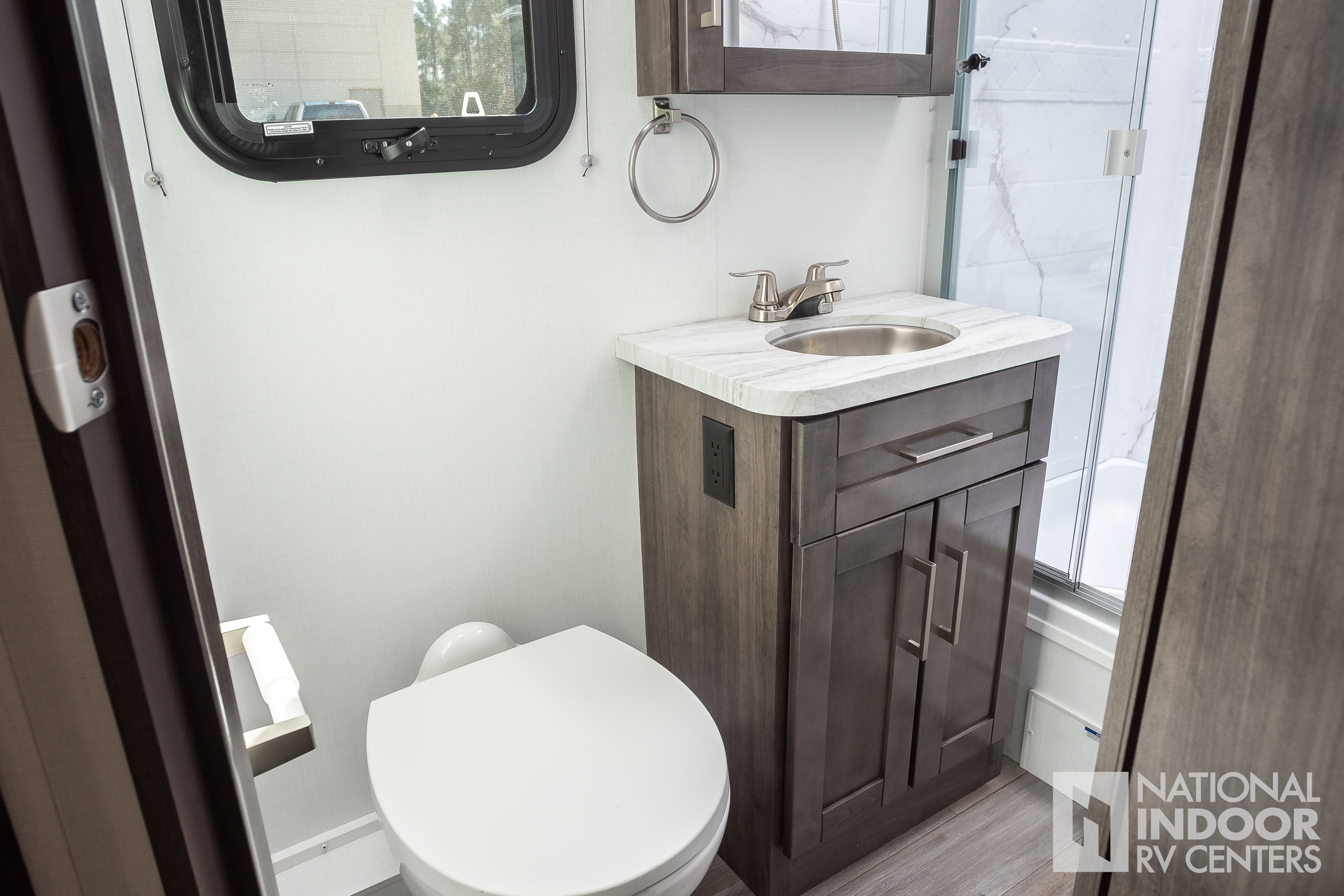 • One-piece, seamless fiberglass front cap; Automotive-bonded panoramic window in front cap with power shade