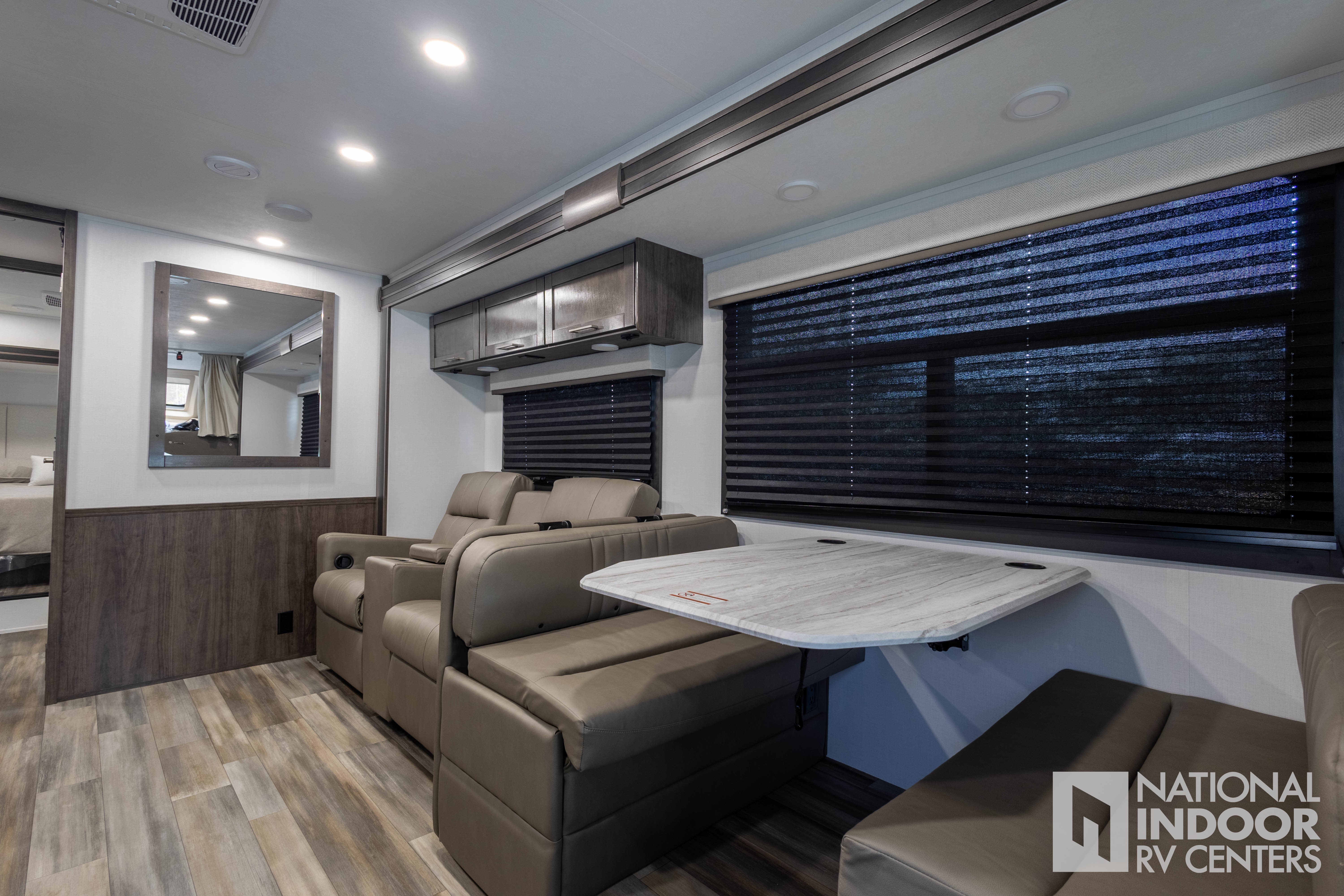• Entegra-exclusive, easy-operation legless dinette table; Car seat tethers (select floorplans)