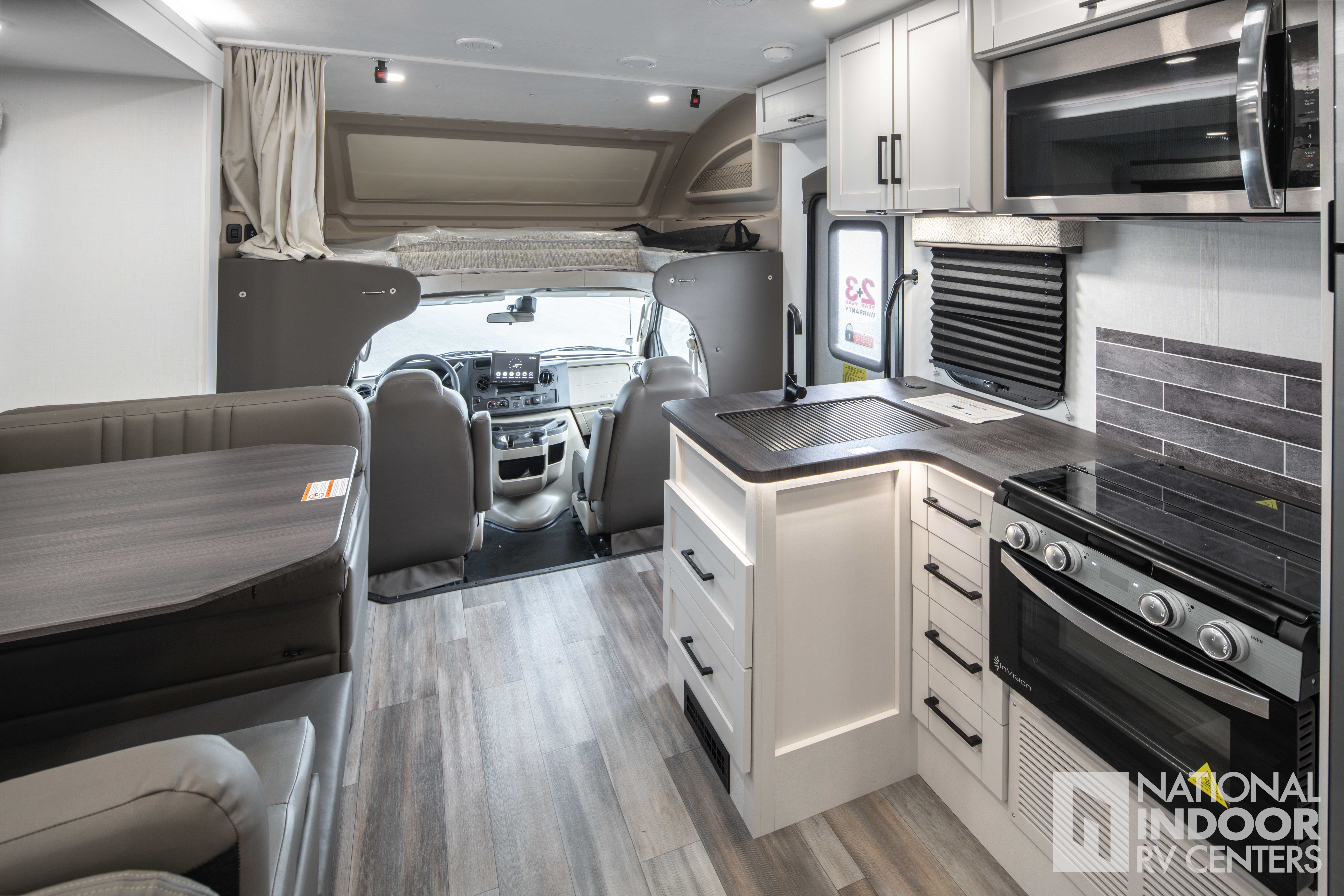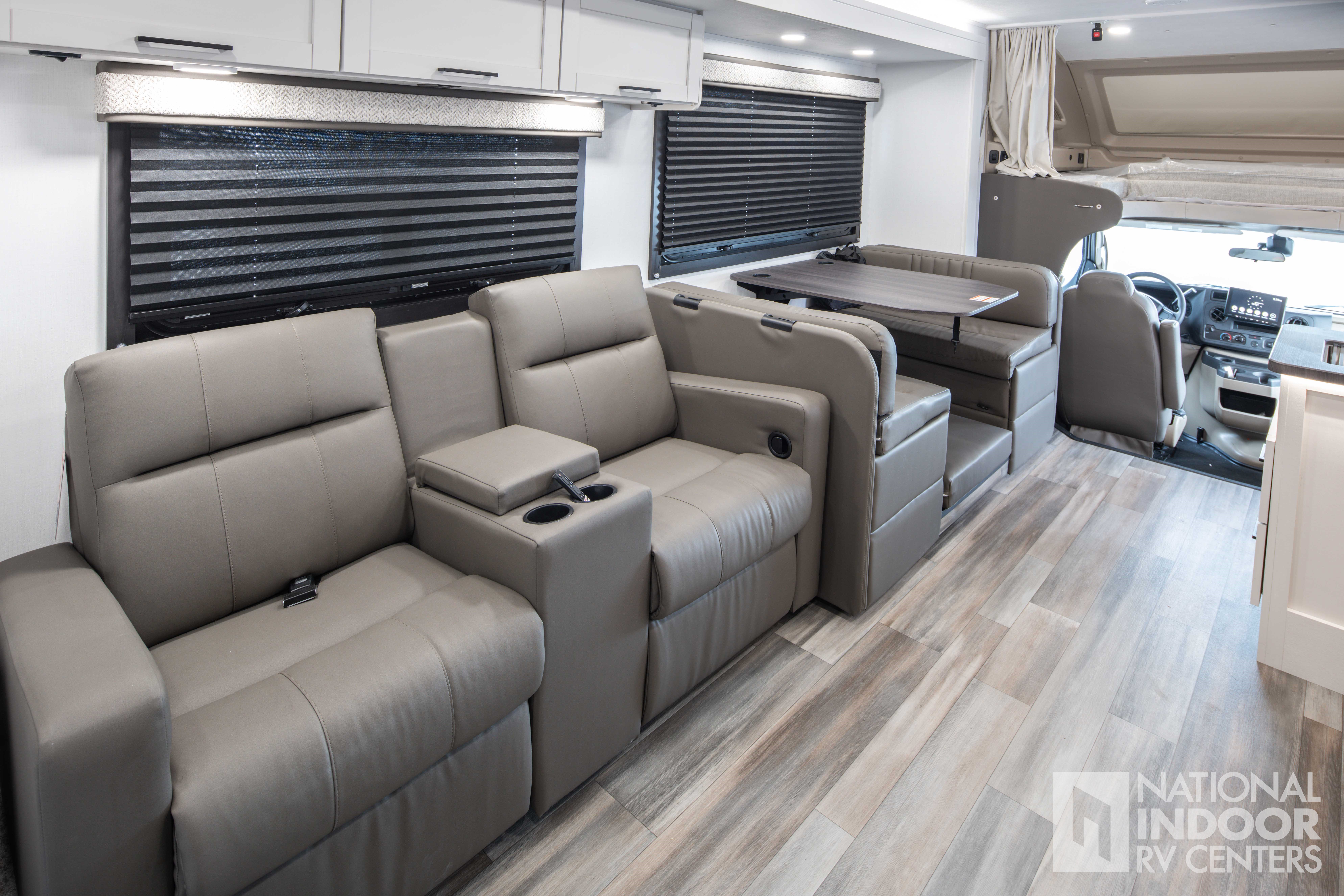 • One-piece, seamless fiberglass front cap; Automotive-bonded panoramic window in front cap with power shade