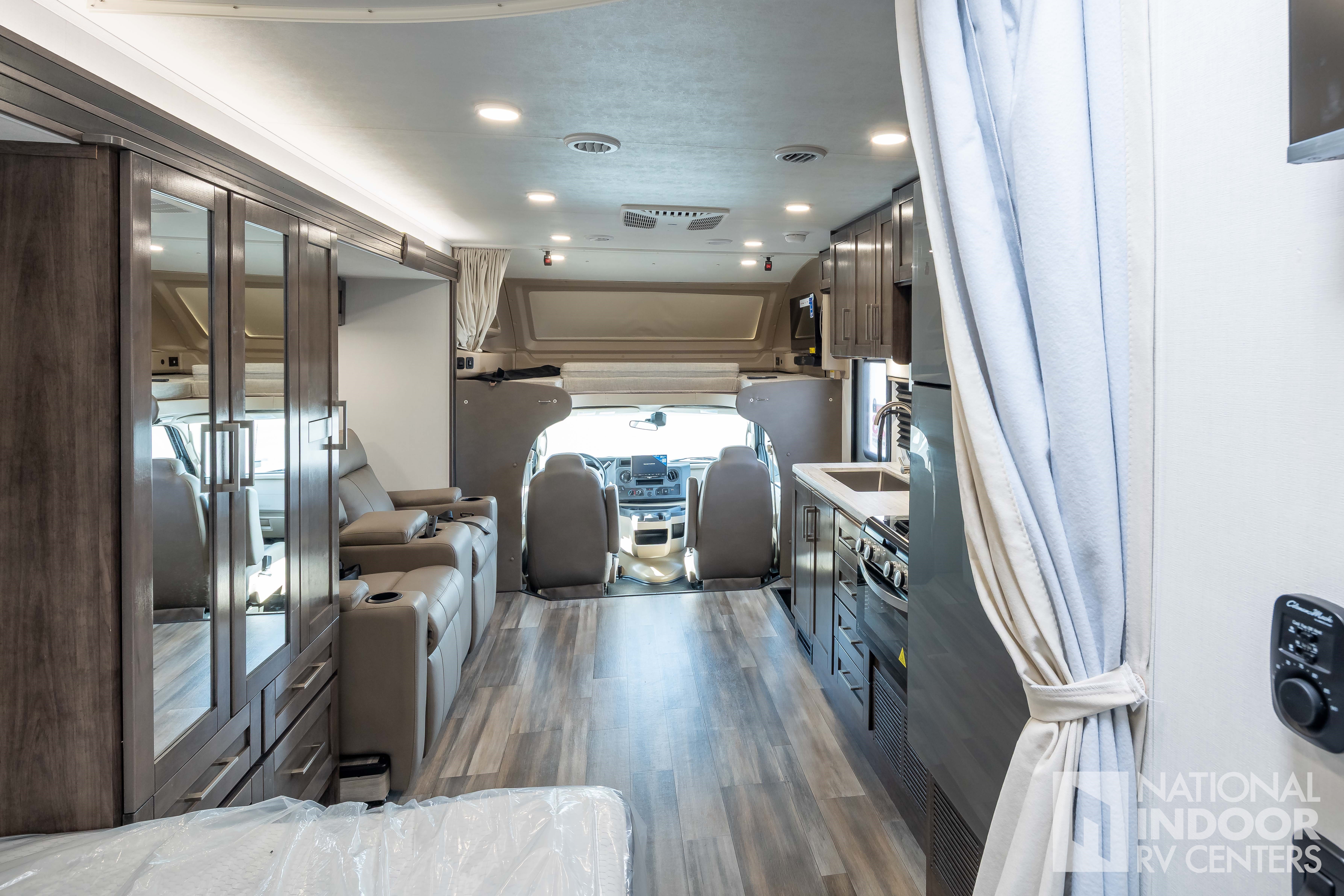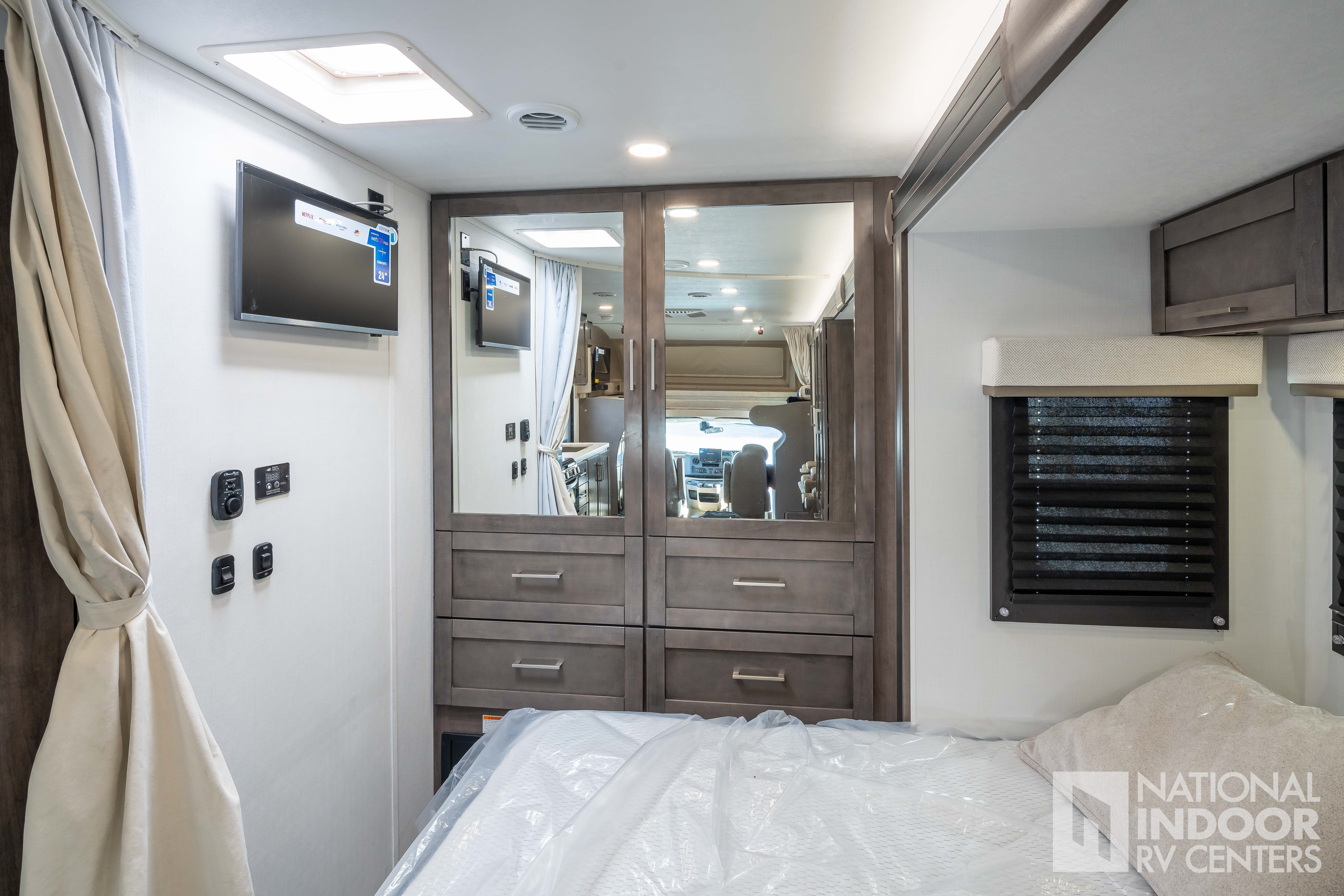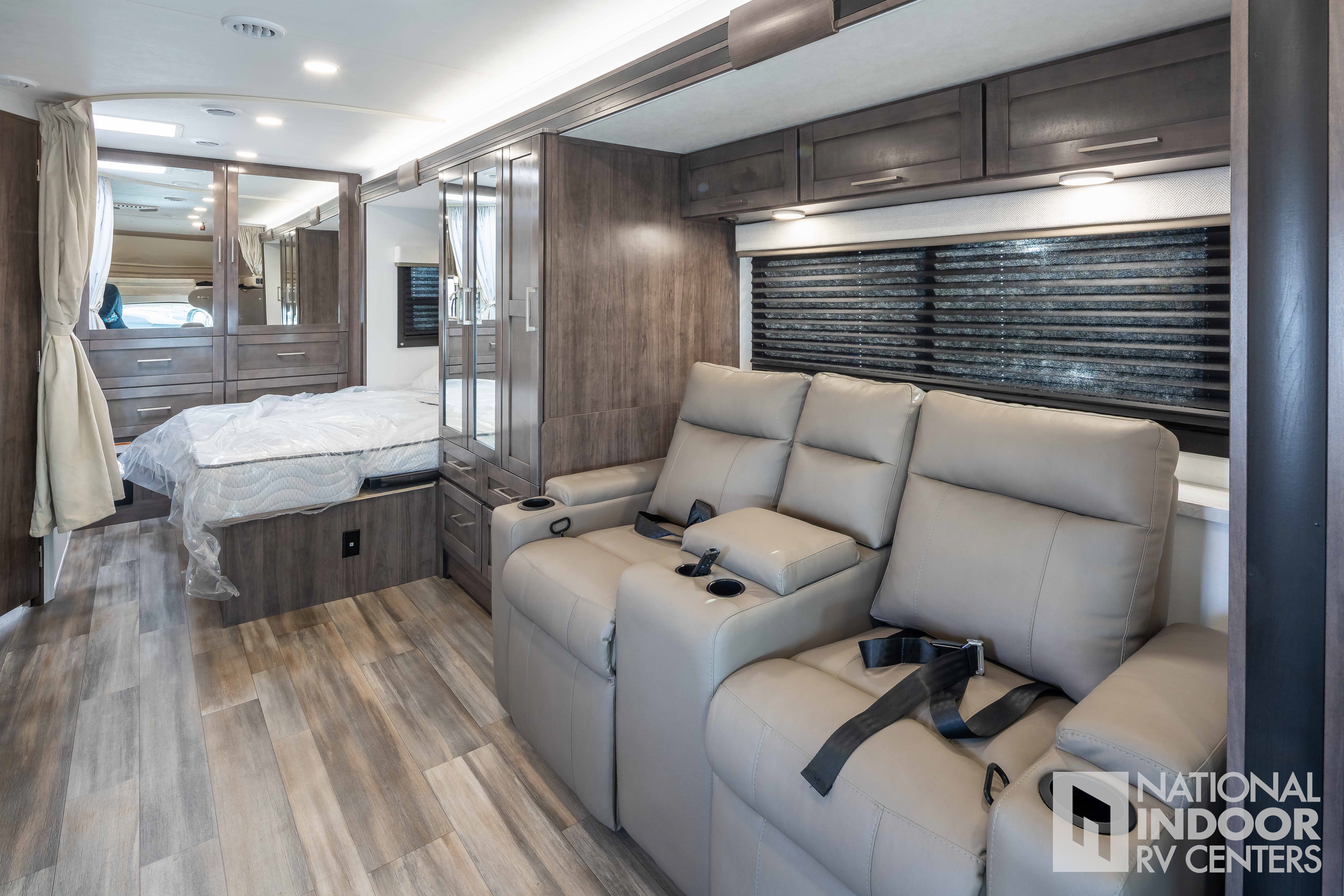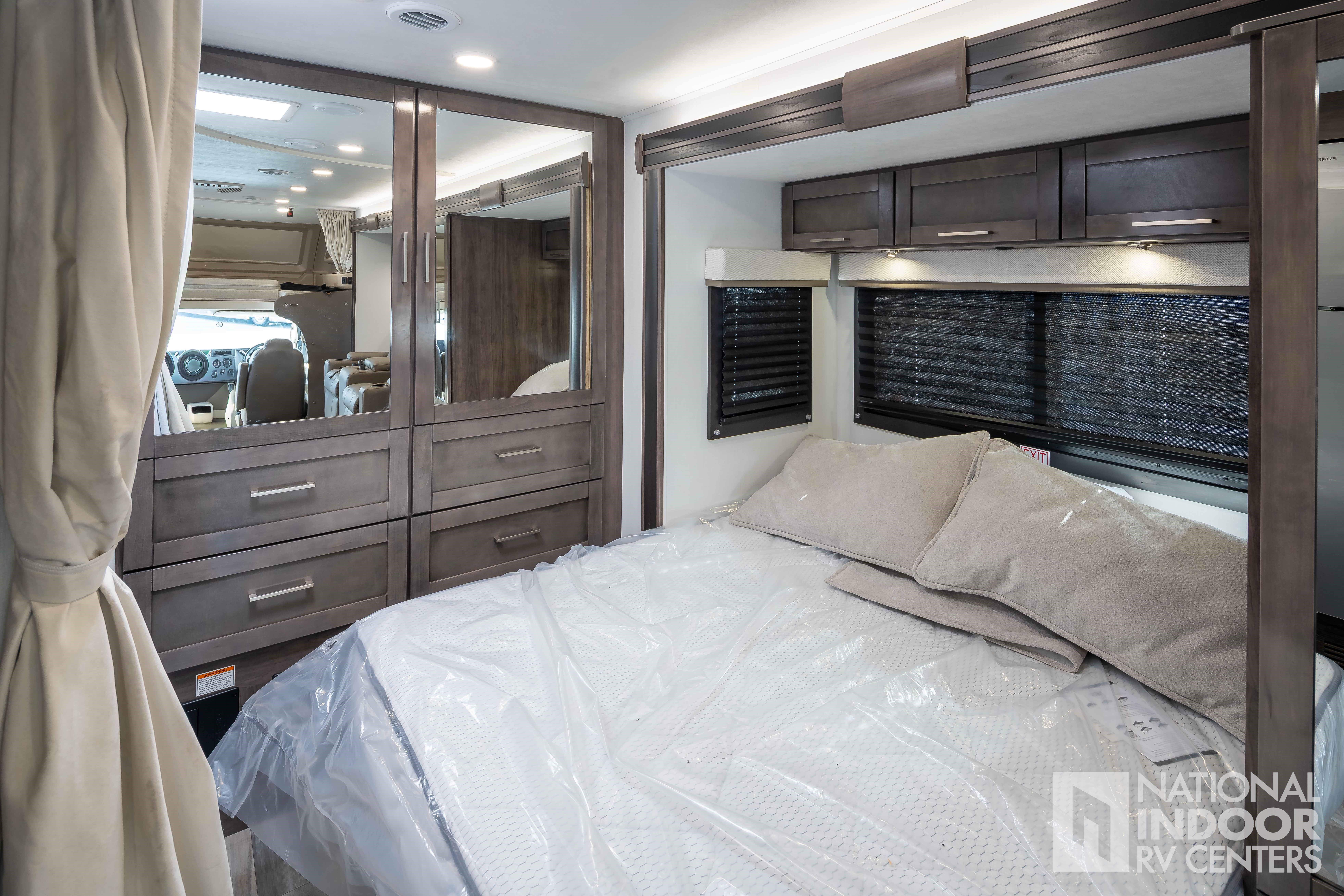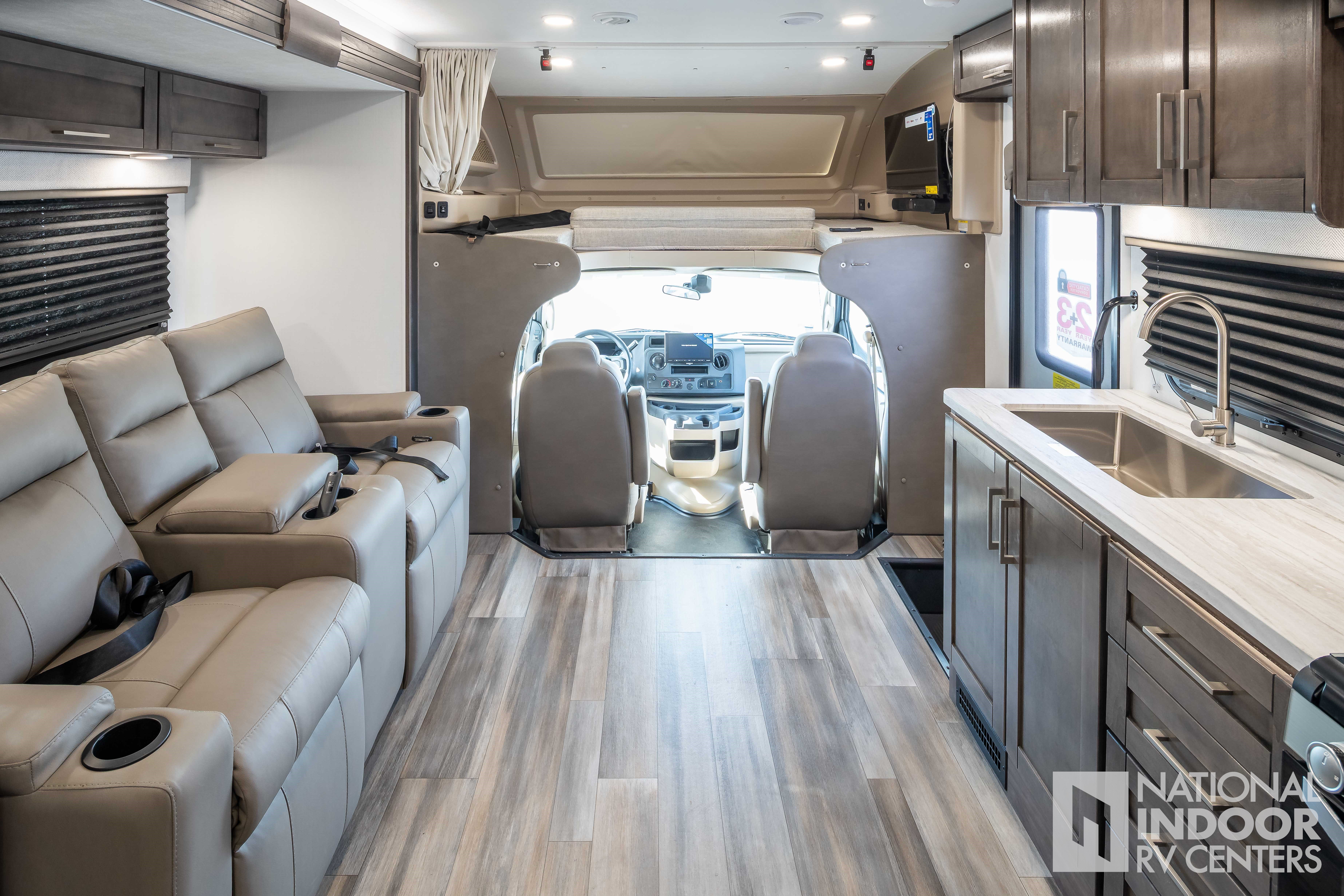 • One-piece, seamless fiberglass front cap; Automotive-bonded panoramic window in front cap with power shade