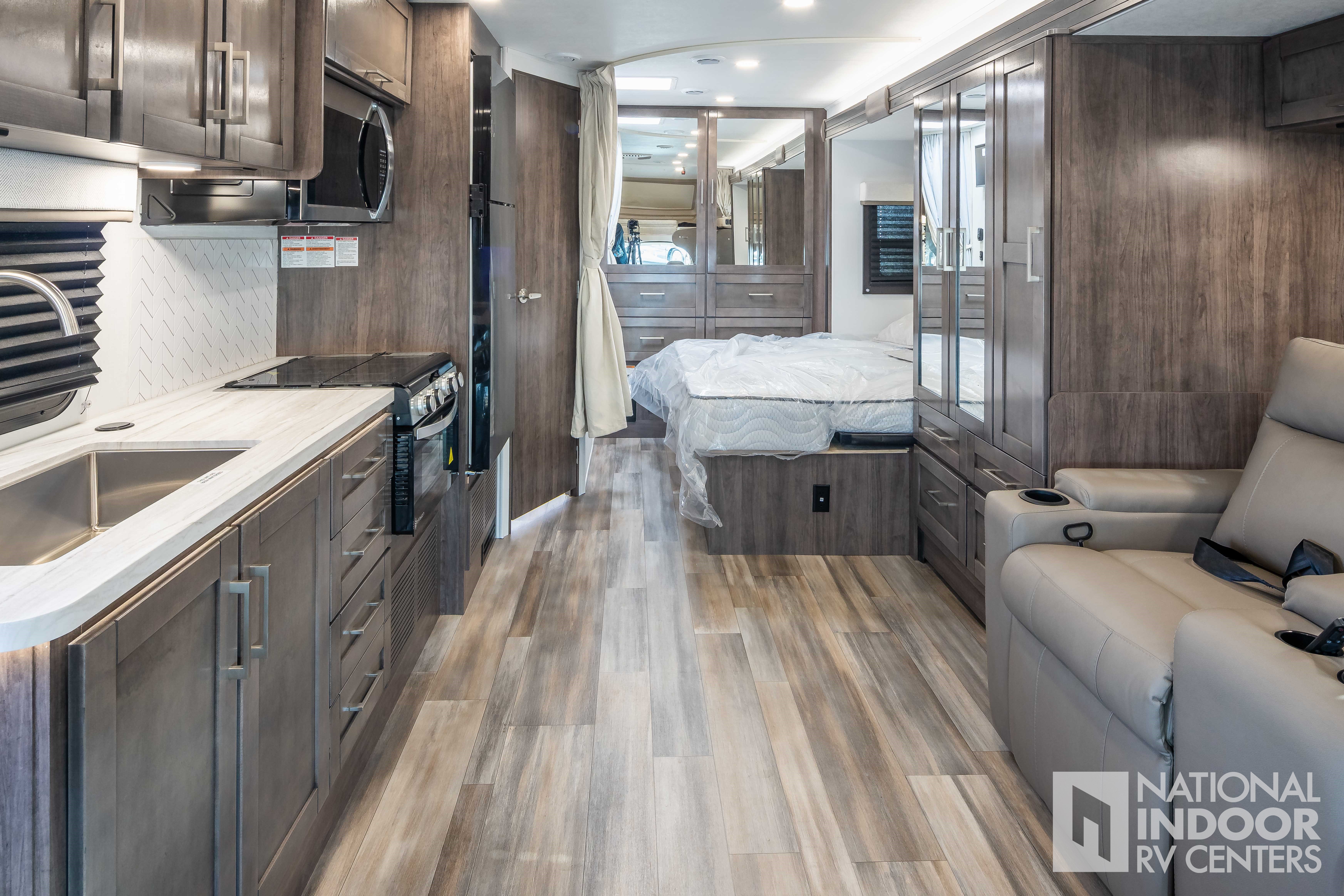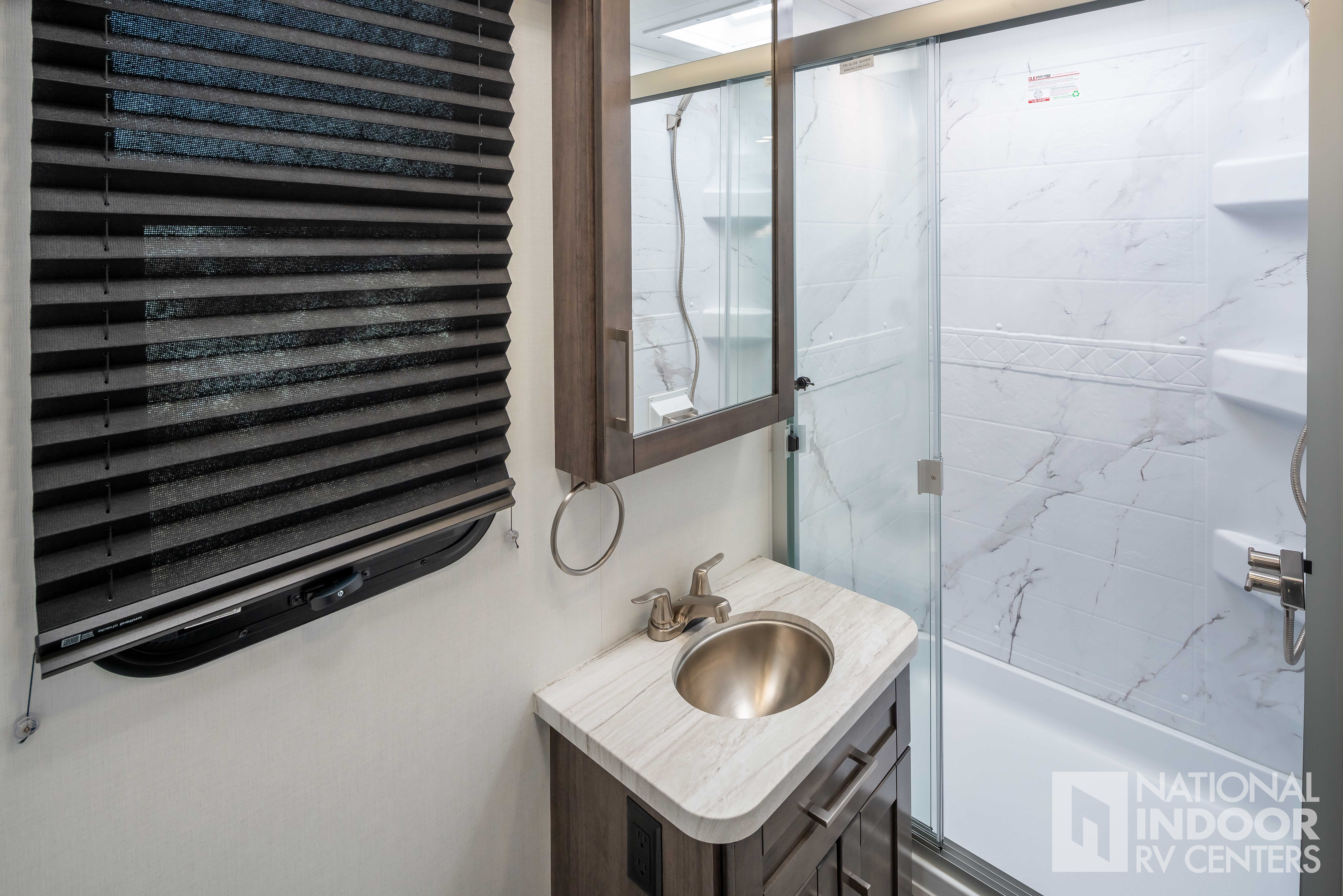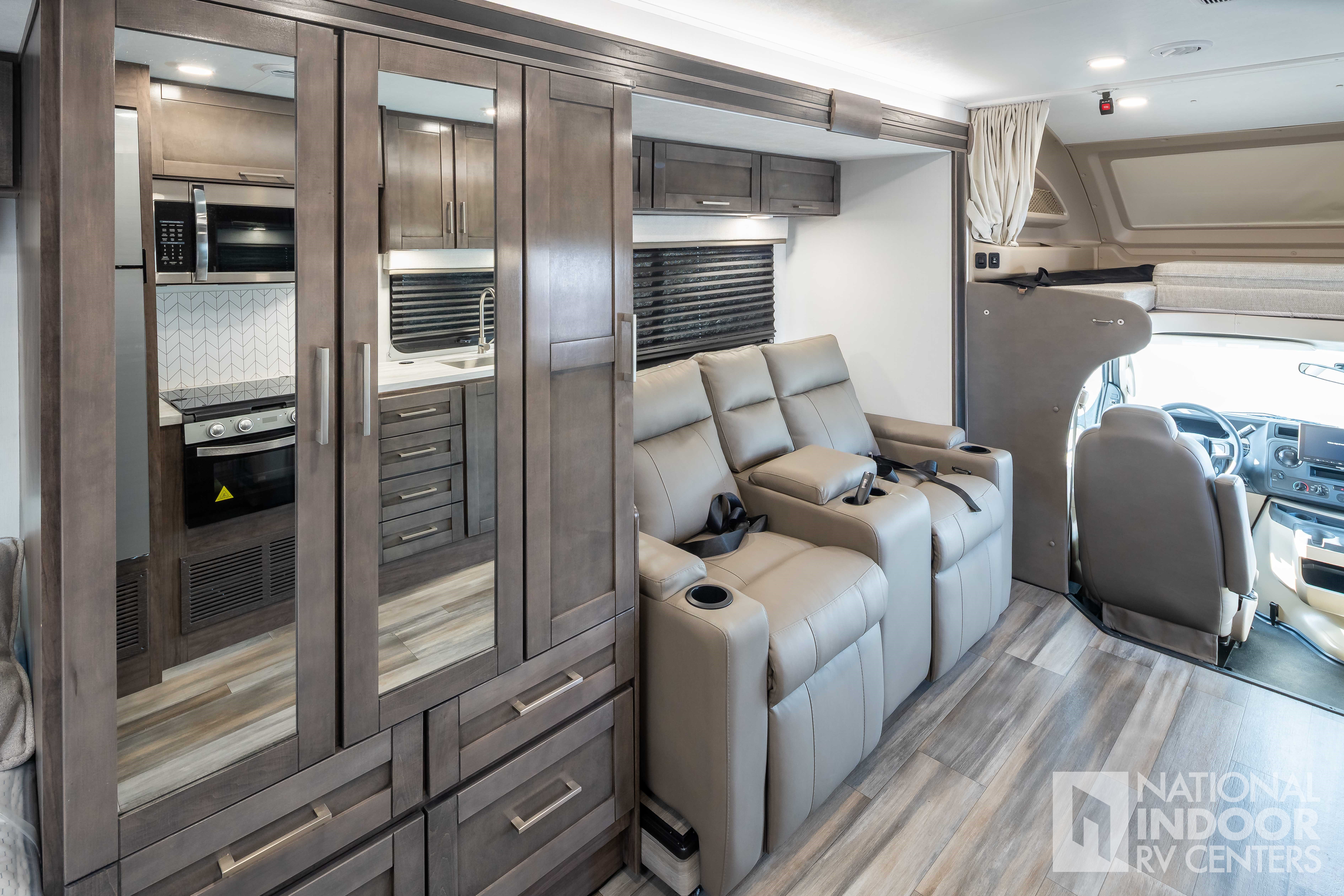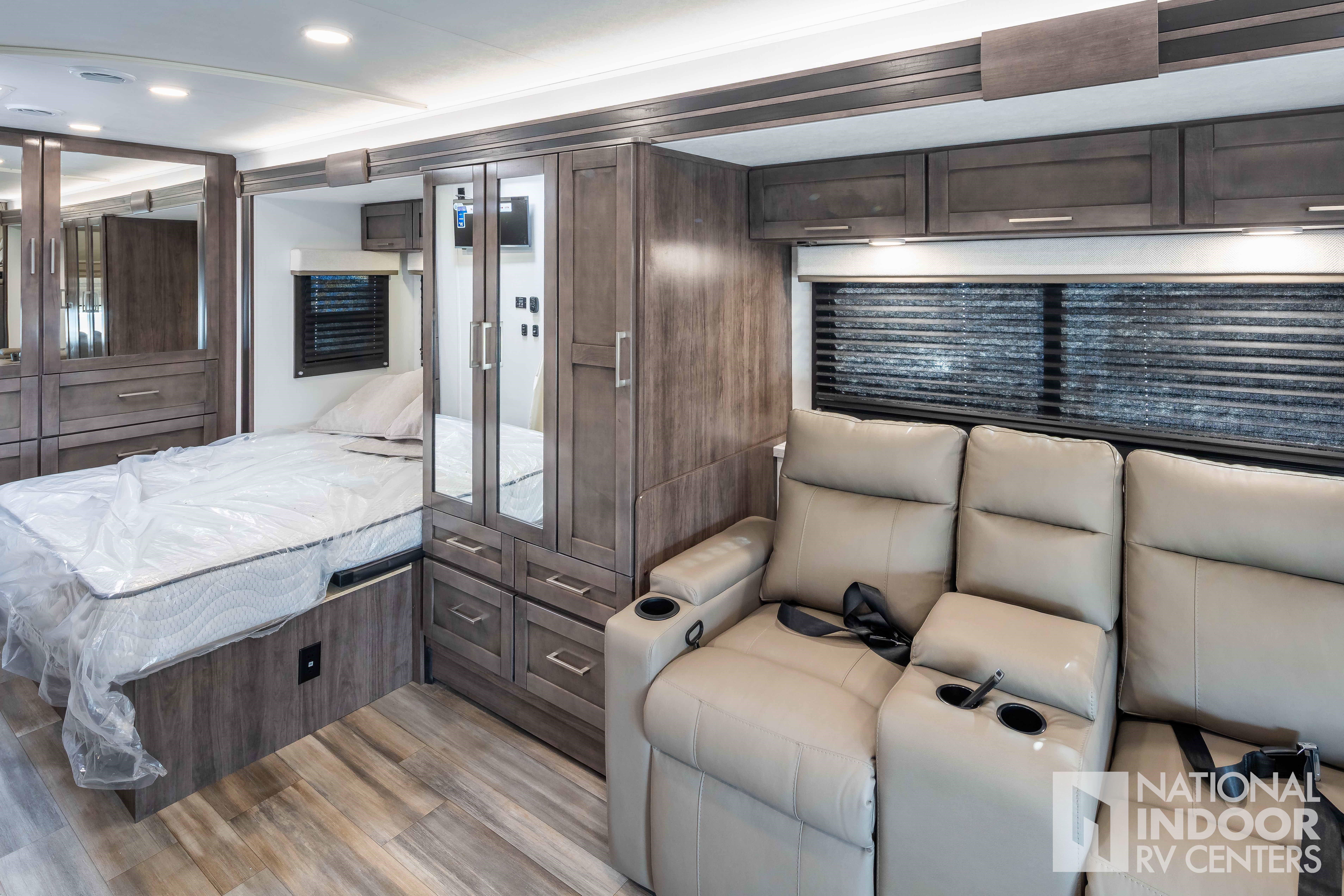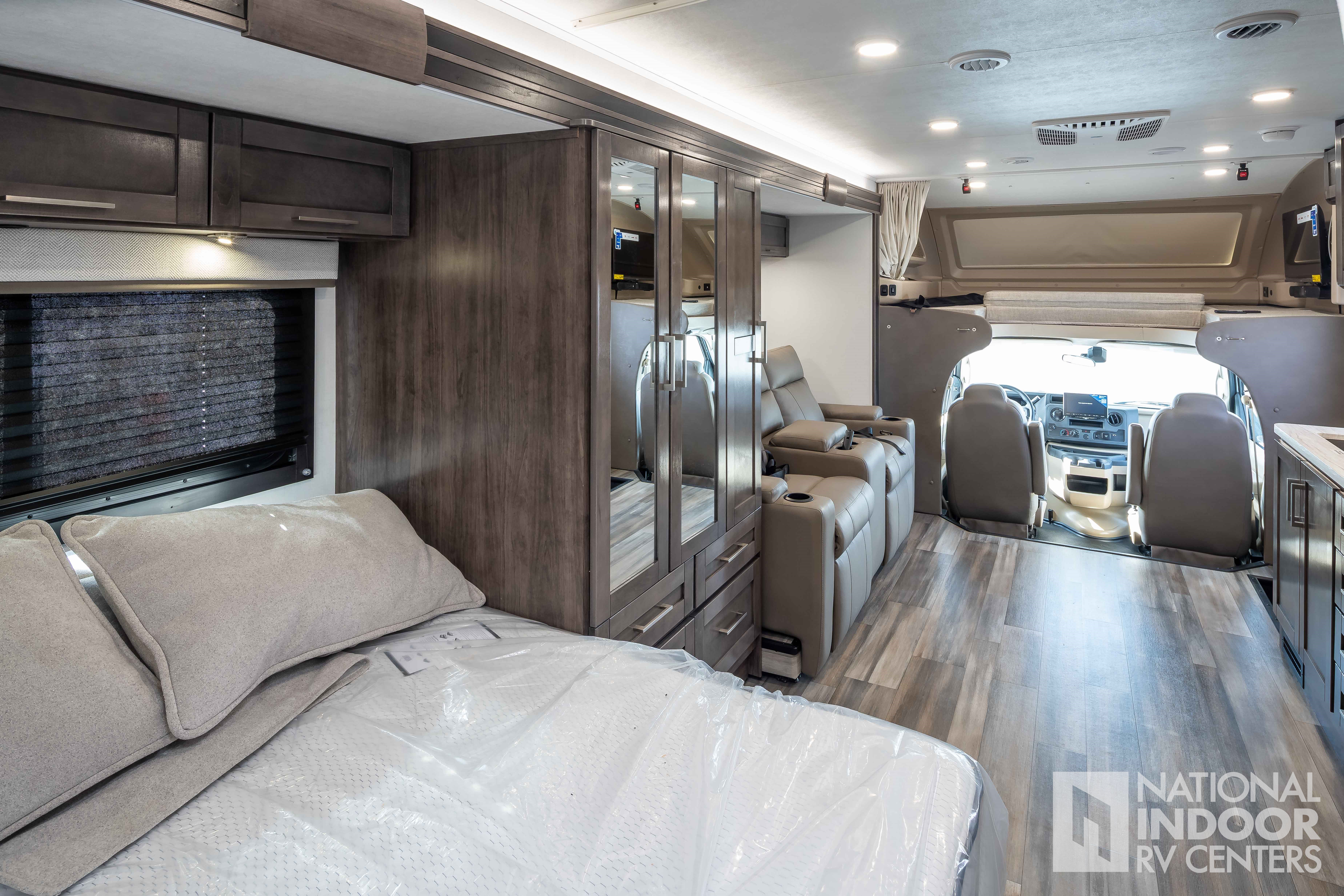 • One-piece, seamless fiberglass front cap; Automotive-bonded panoramic window in front cap with power shade
