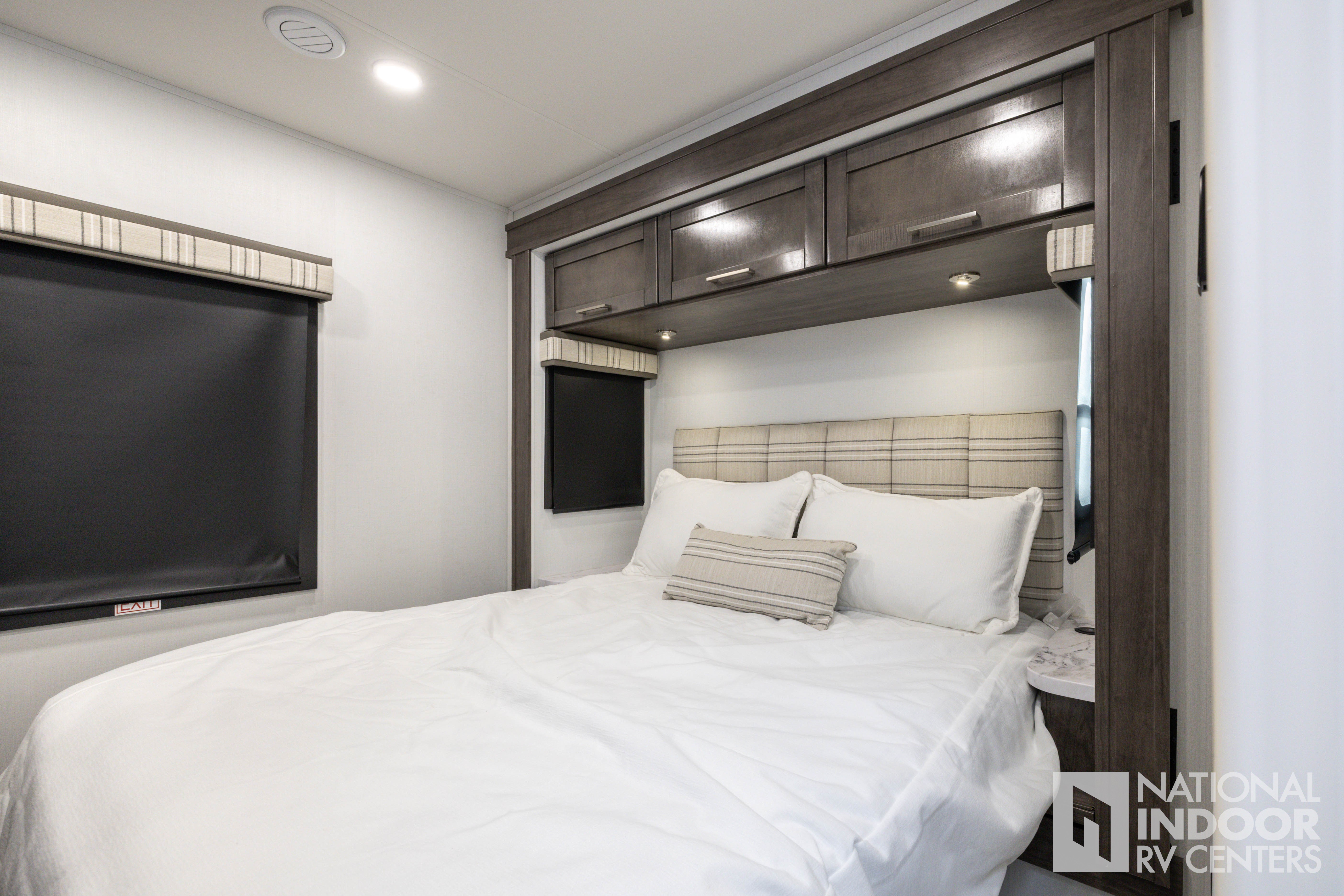 • One-piece, seamless fiberglass front cap; Automotive-bonded panoramic window in front cap with power shade