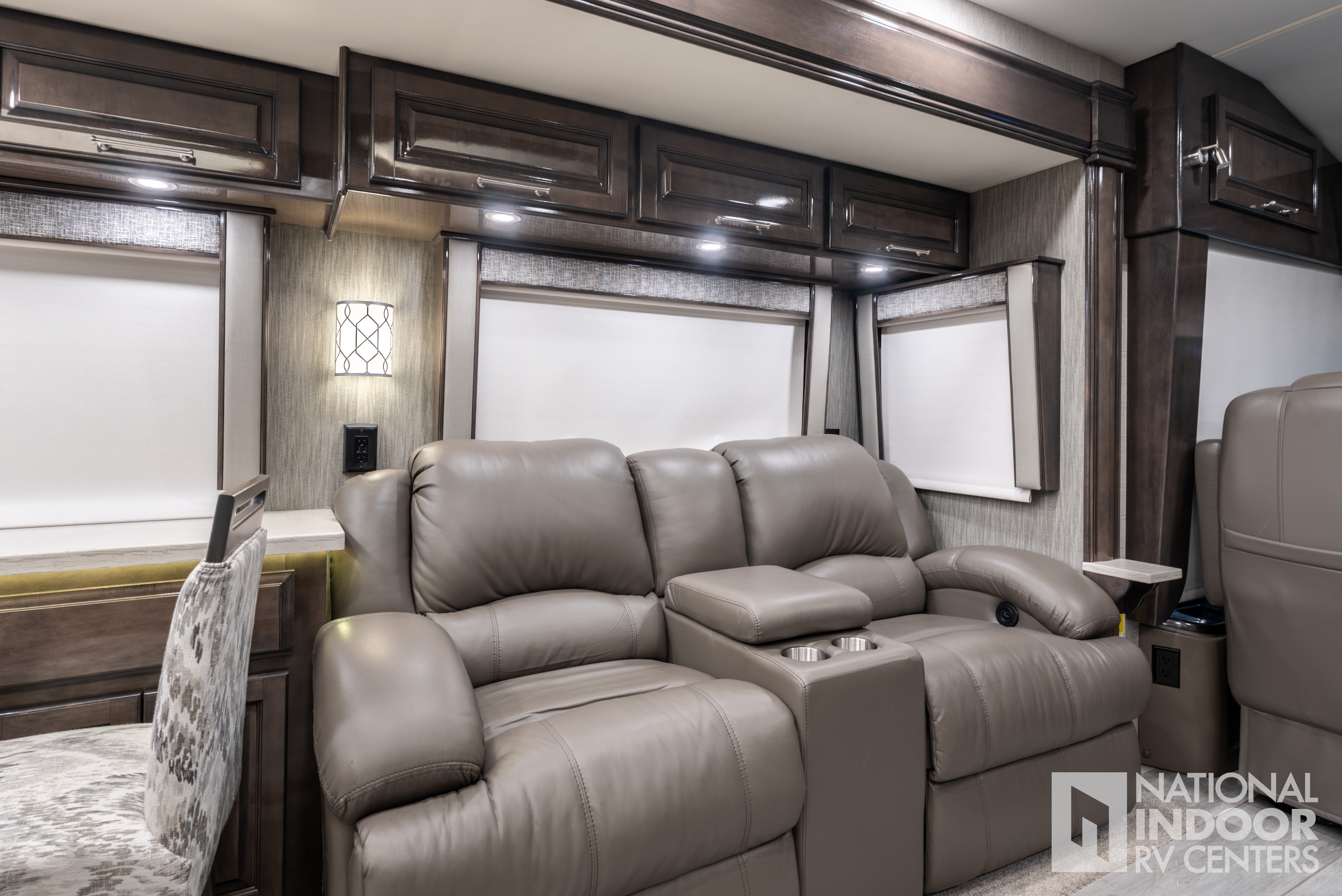 | Theater seating with power recliners and hide-a-bed |