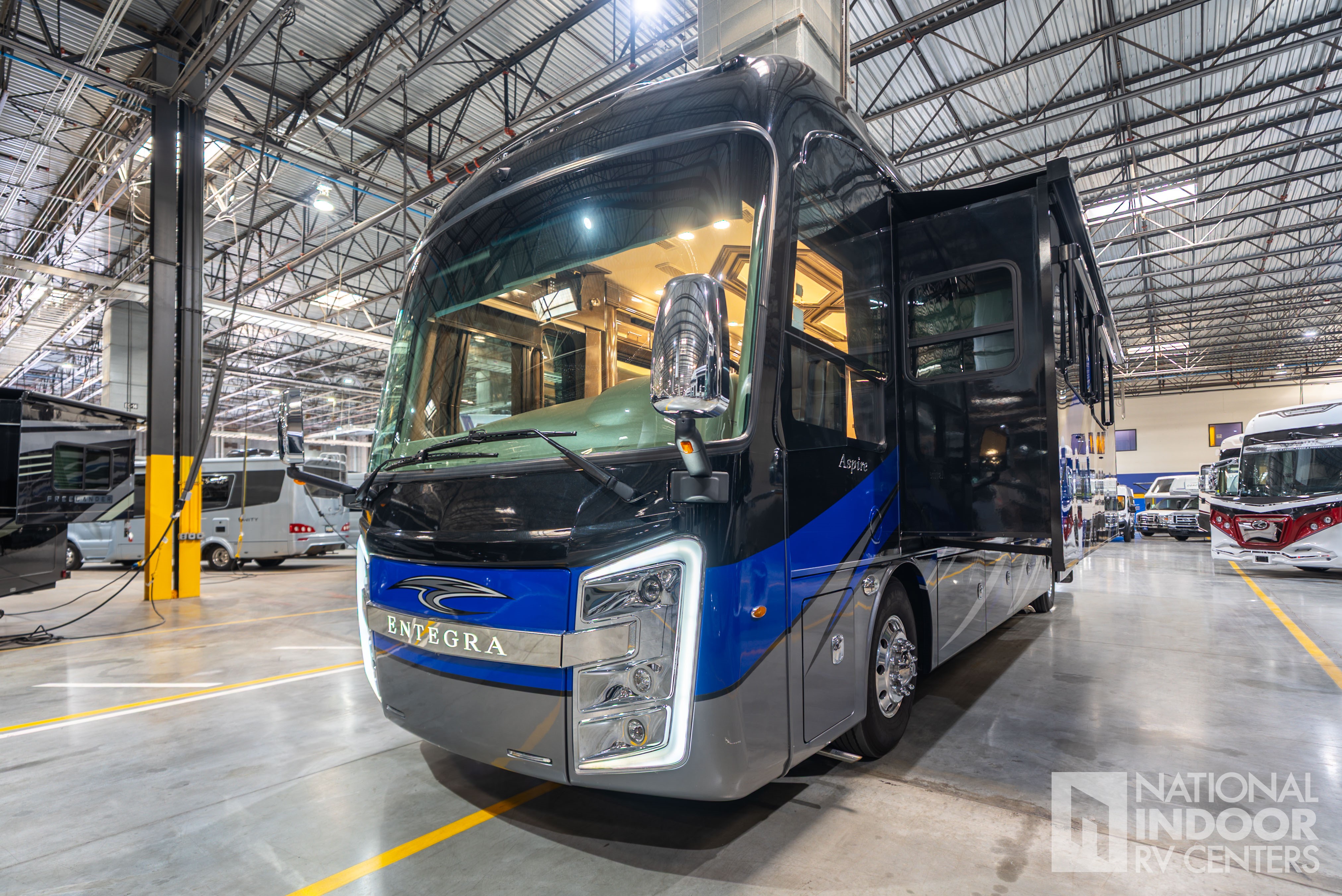 | Entegra-exclusive Relia-Torque flush-mounted 12V slideout system with VegaTouch and rocker switch controls |