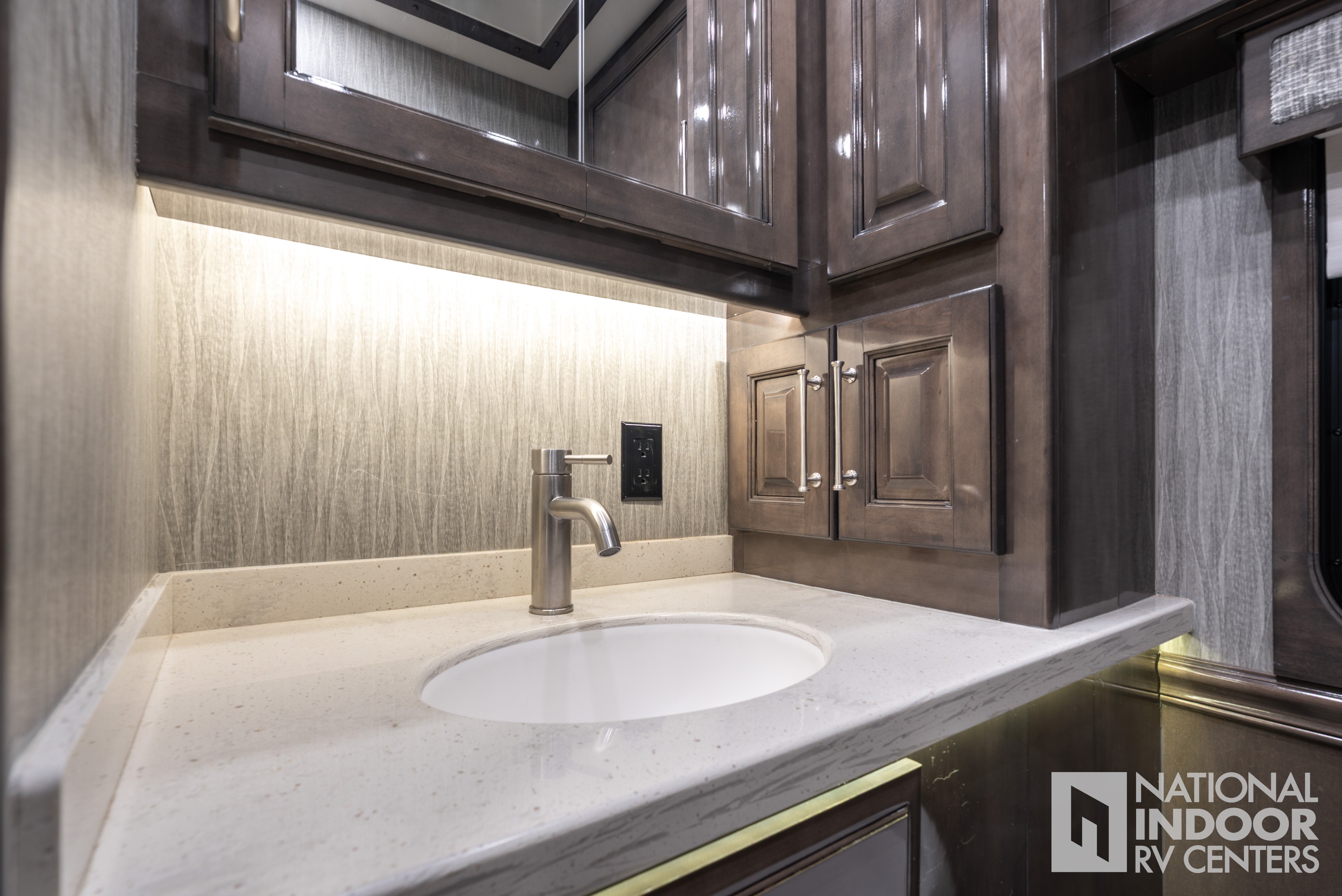 | Solid surface countertops with dimmable LED accent lighting |