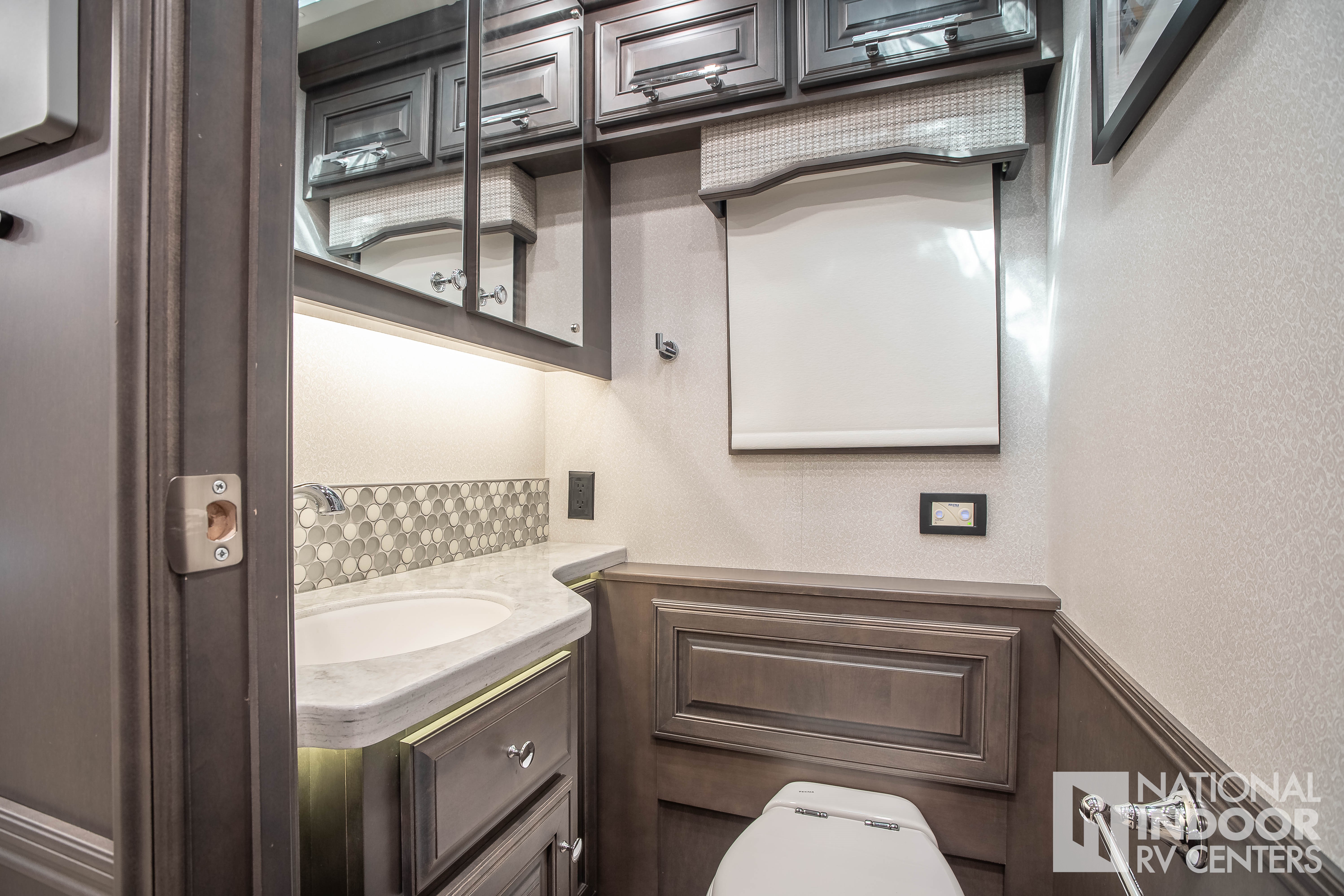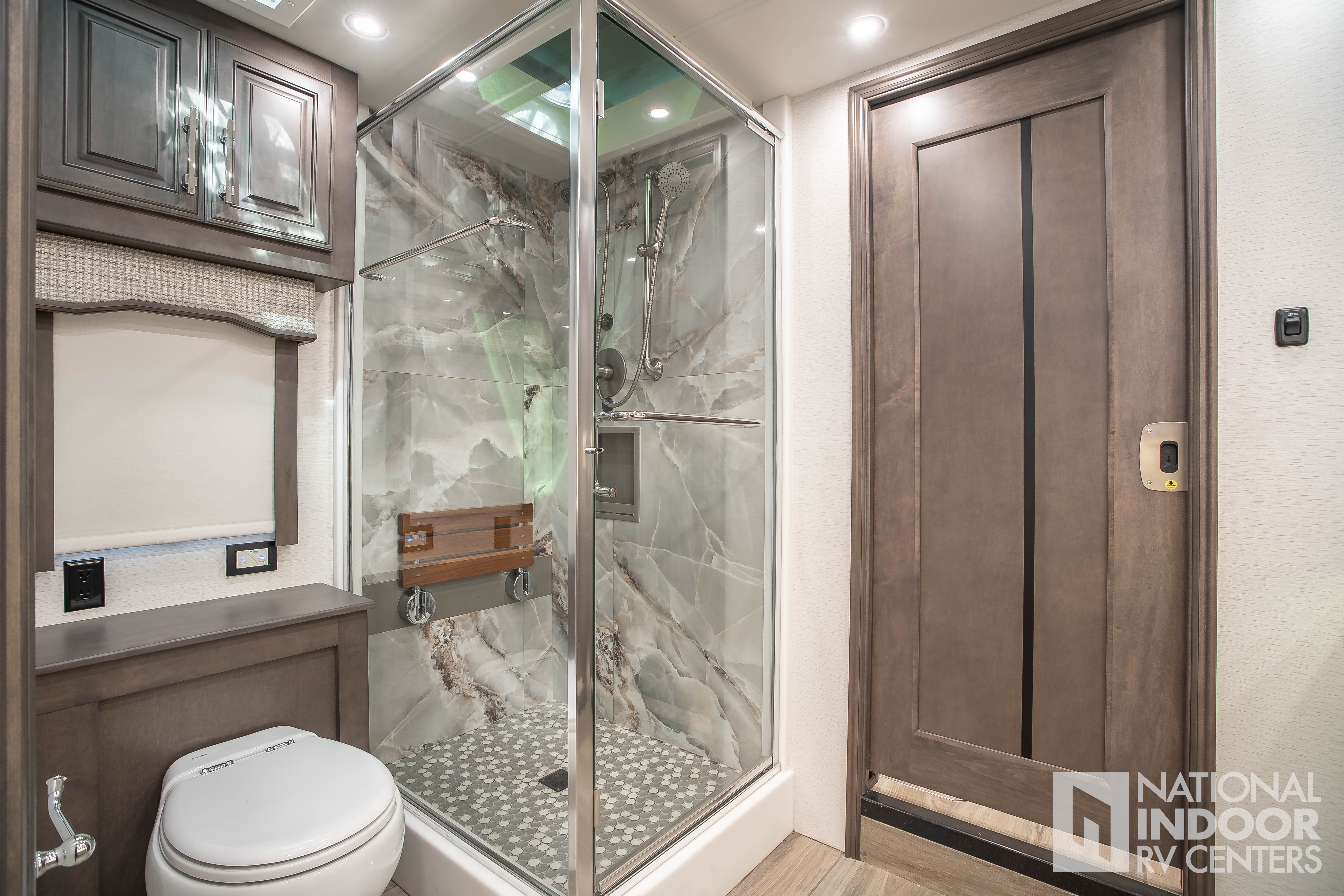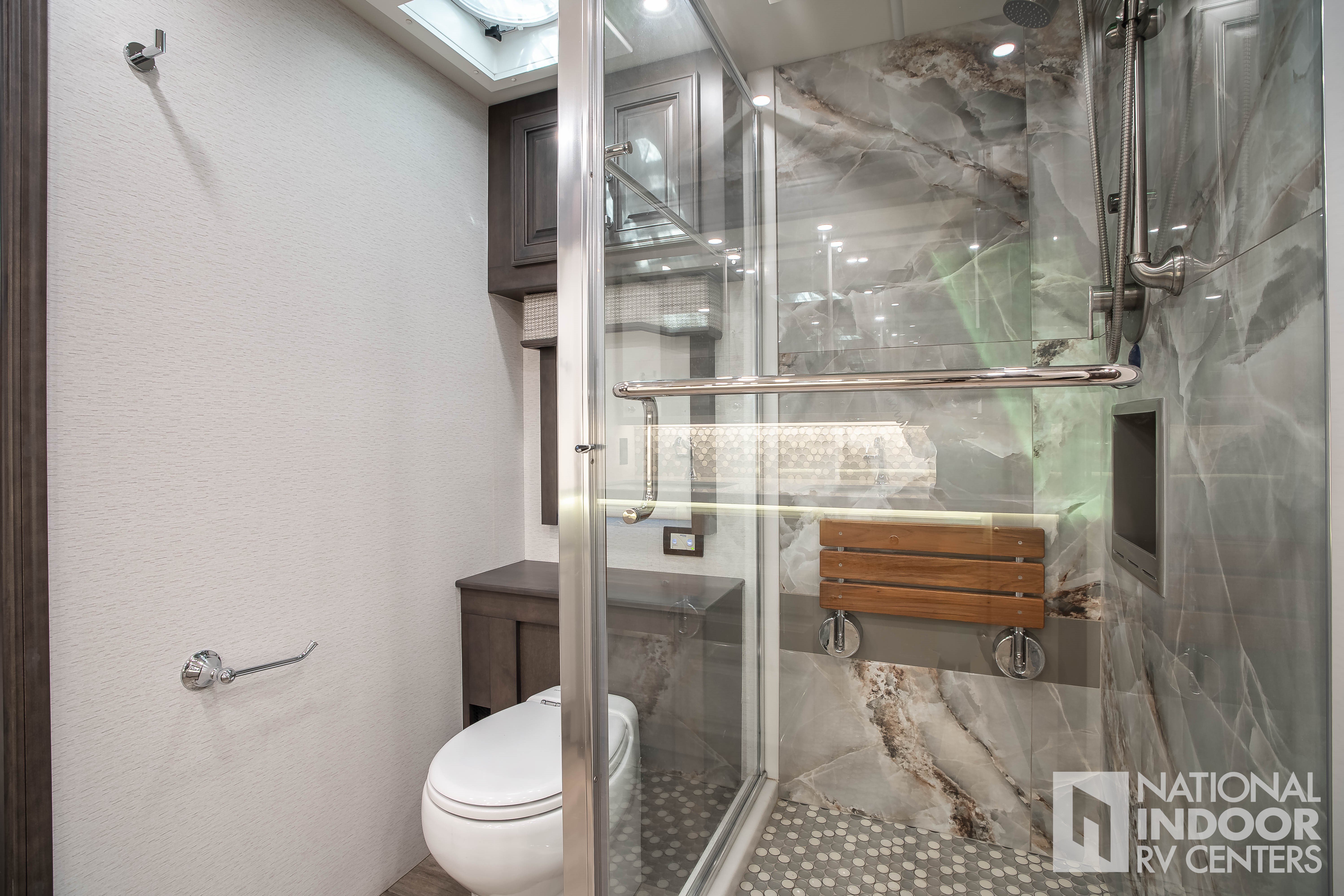Thetford® macerator toilet in main bath; Thetford® macerator toilet in mid bath (45D, 45R, 45W); Thetford® toilet in mid bath (45B)