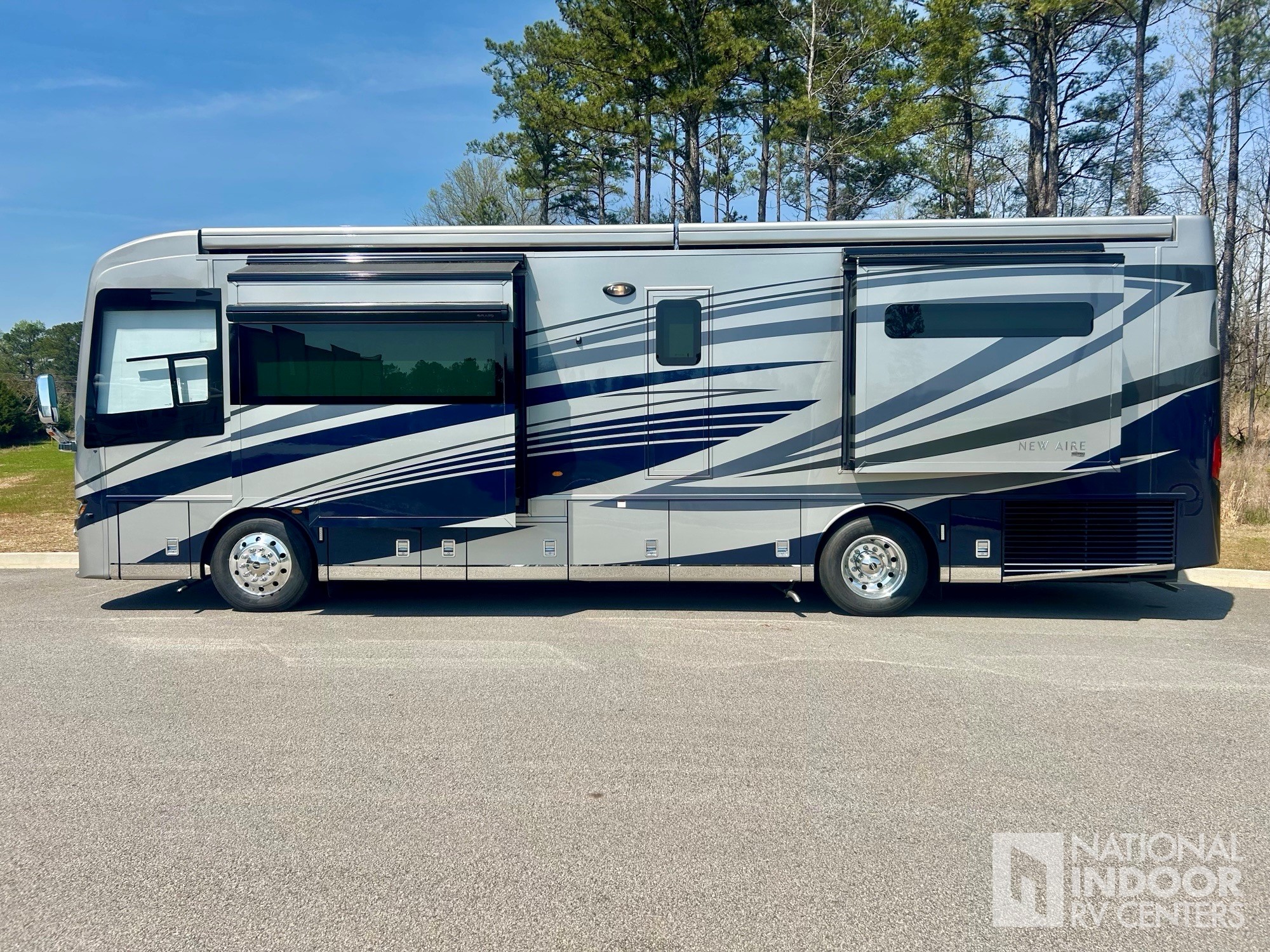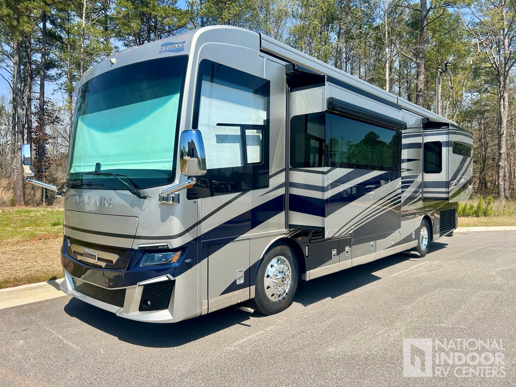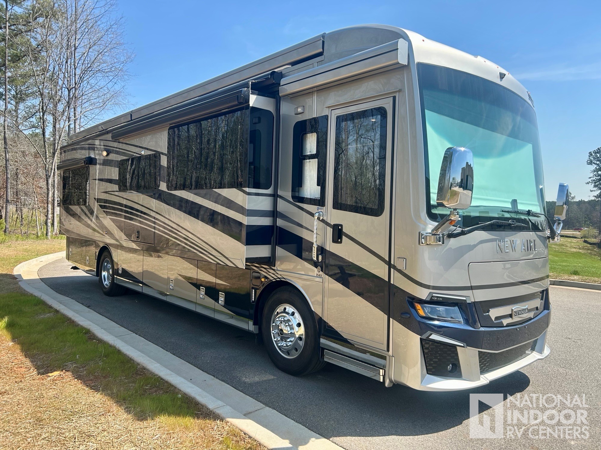 • Our one-owner 2023 Newmar New Aire 3543 comes well dressed for the party in Silver & Blue, Cream and Sable.